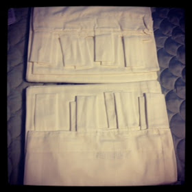 That day my luck must have been with me! I came across the perfect set, yes set...as in two per package, of stark white curtains. Eeeekkk (That was me shrieking...literally. I was like a kid in a candy store. I know, I'm lame, but once you buy a house, you will understand. Homeowners, can ya back me up on that?!)!! To add to my joy, each curtain panel was 54 inches wide and 118 inches long! The perfect length. But wait...that's not all (in the voice of a salesman...)...the set was, ready for this, $29.99! Twenty-nine-ninety-nine. Yes, you read that correctly. That is half the price of what I paid for just my curtain rod in the living room. To say the least, I was thrilled.